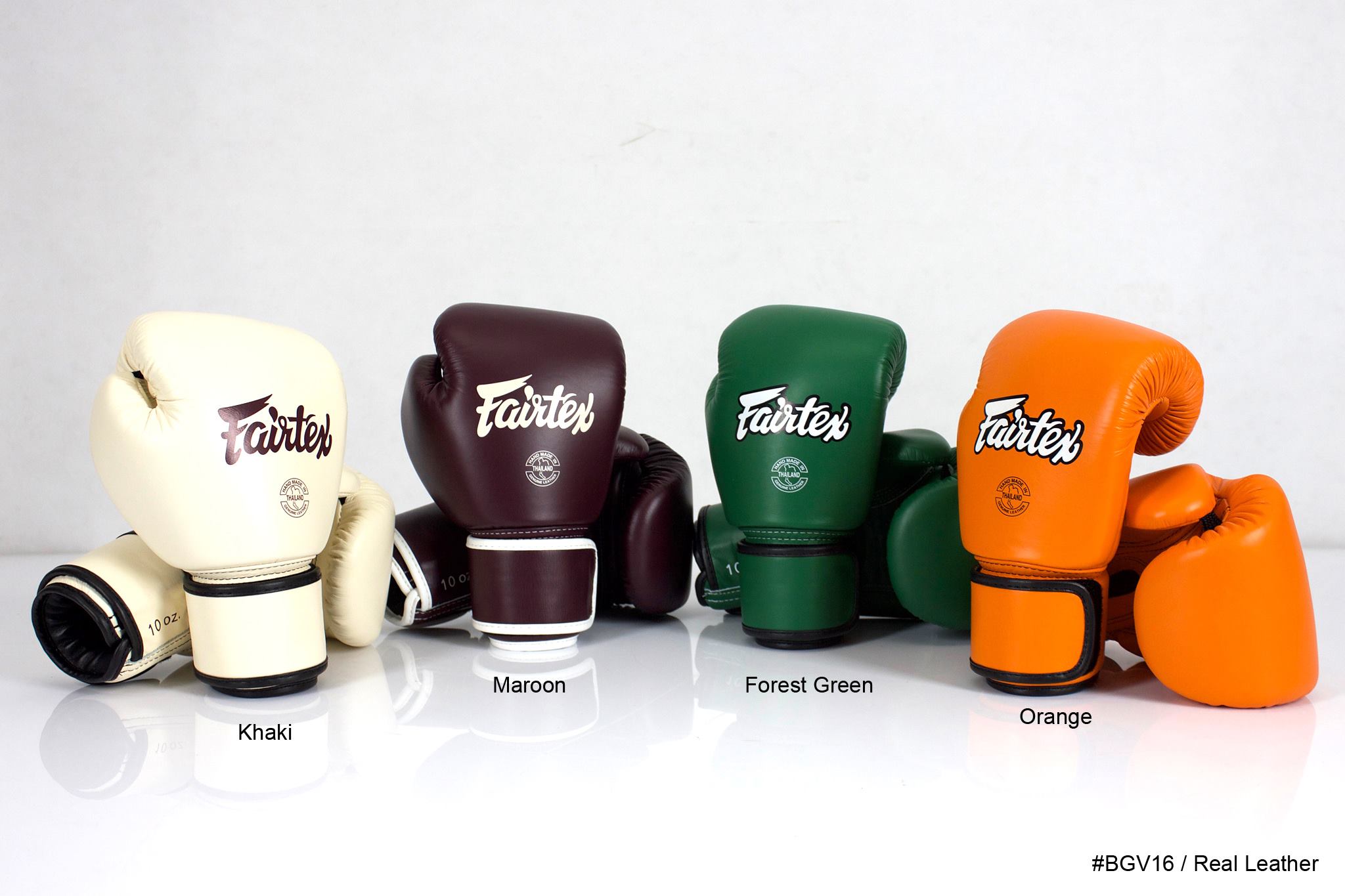 Fairtex is launching new gloves. BGV16, New gloves adapted from cut & pattern of BGV8 (Amateur Boxing gloves) but with brand new design of padding. These are real leather gloves. 4 new colors are available. The leather is matte color and raw. The gloves are especially designed for women with softer padding, compact, easy to use and form a fist, and lightweight.