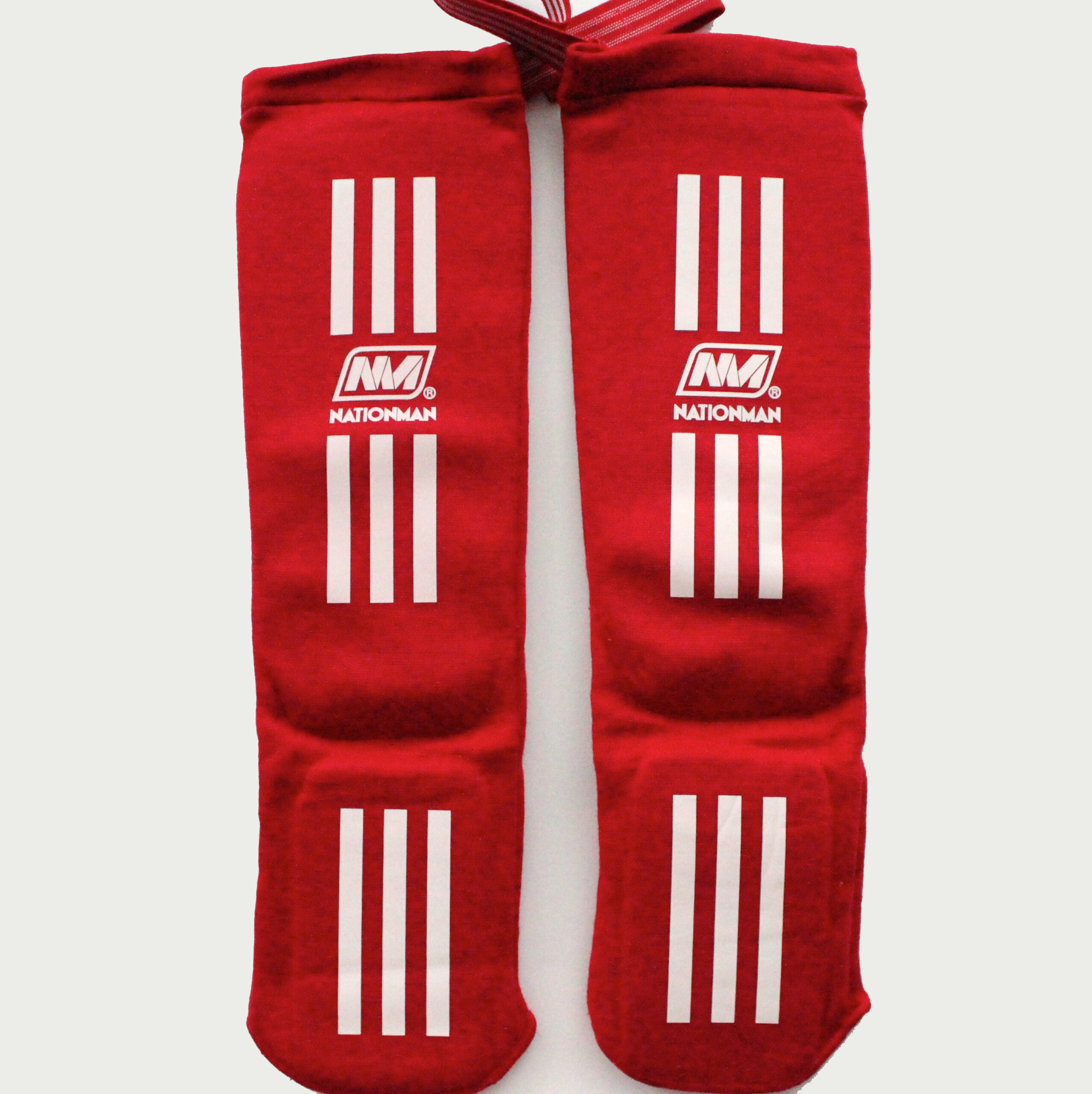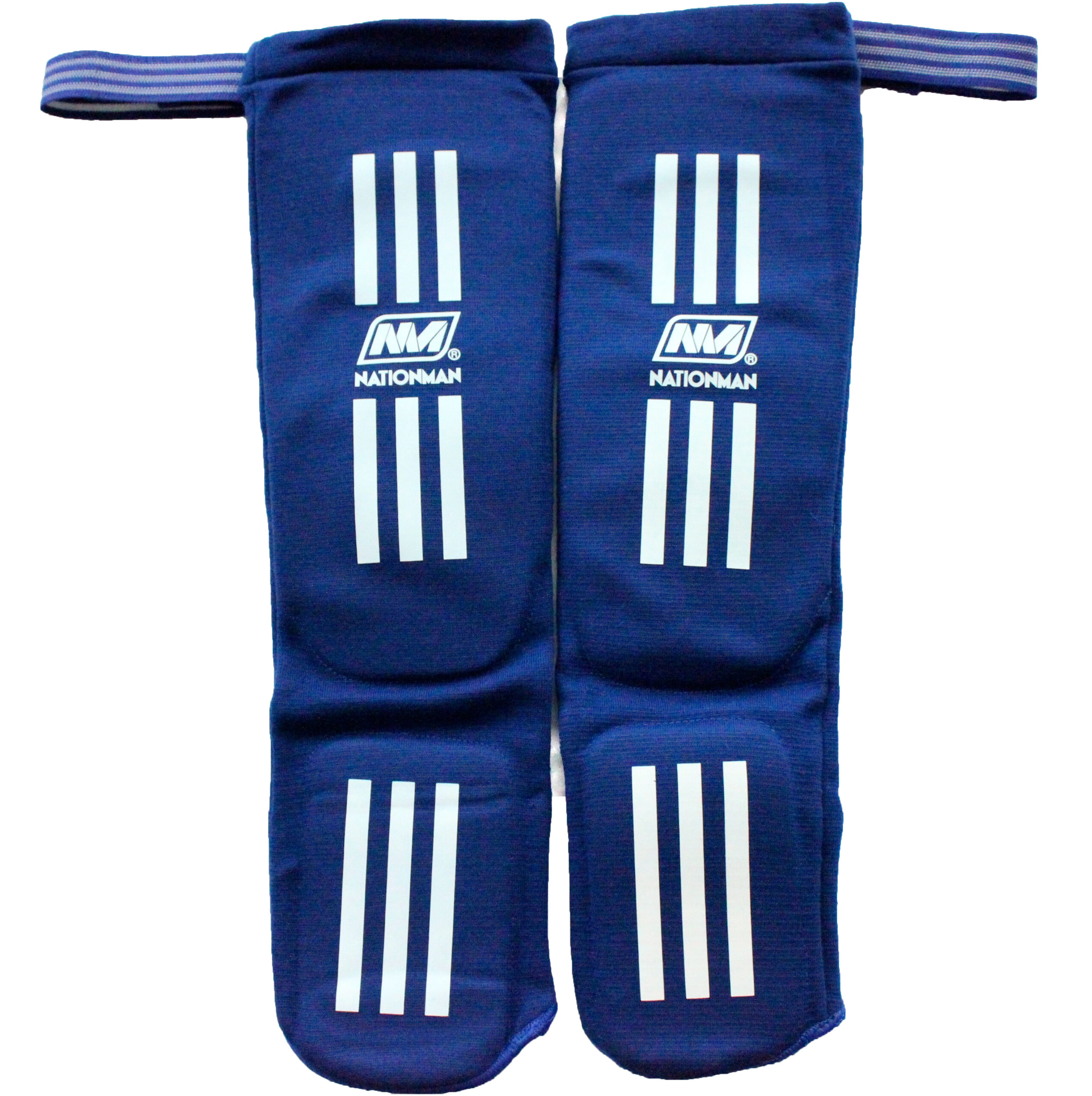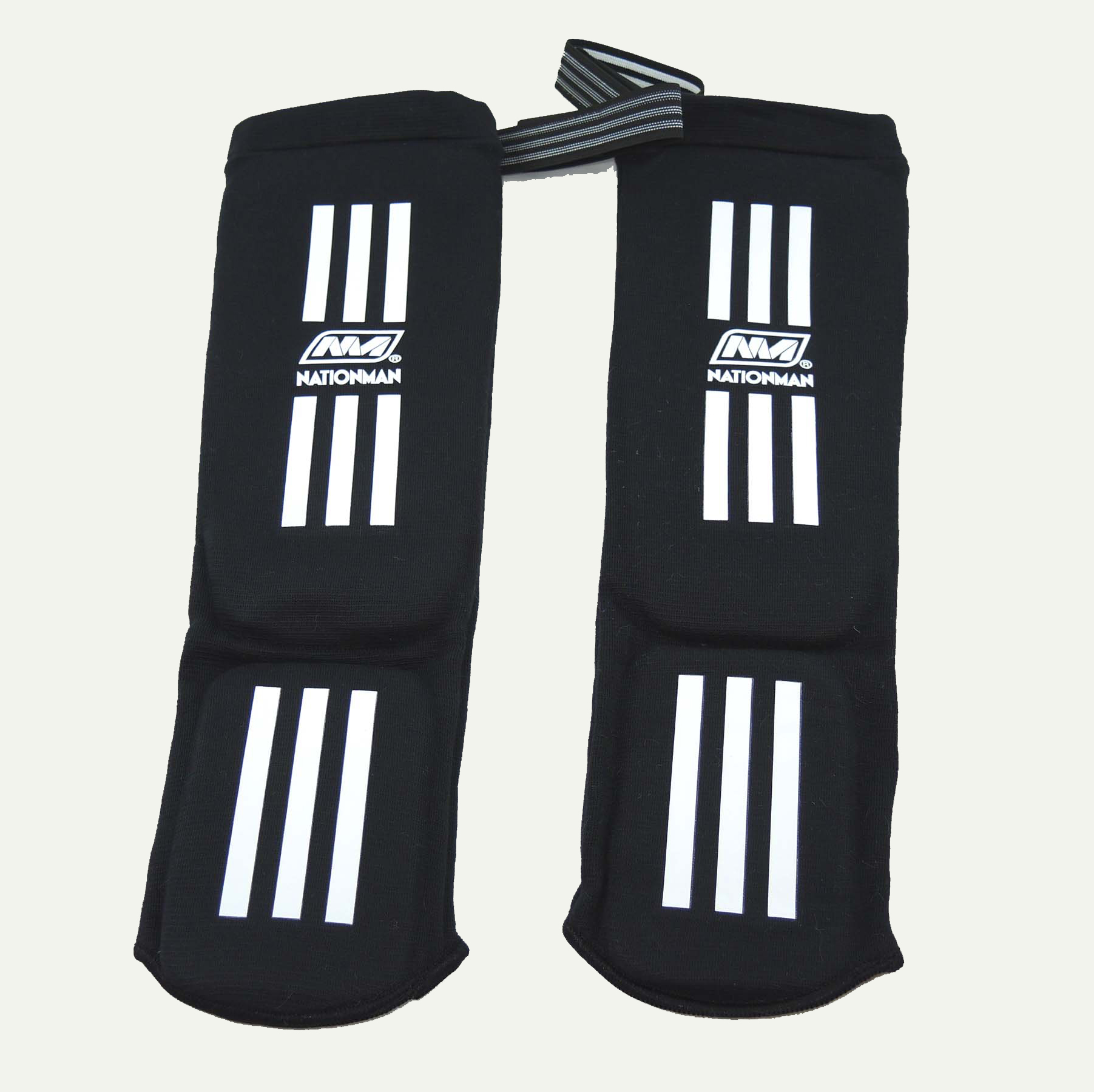 Premium elastic cotton competition style shin pads from NationaMan with high impact padding on the shin and instep for maximum protection. Has a velcro fastening at the top for a secure fit. One size only. This particular shinpad is made of fabric and consisting of a layer of foam. It has velcro enclosures to secure the pad to your shin. This pad can be used for training, technical sparring as well as light sparring. Especially suitable to protect user while simulate a competitive sparring session