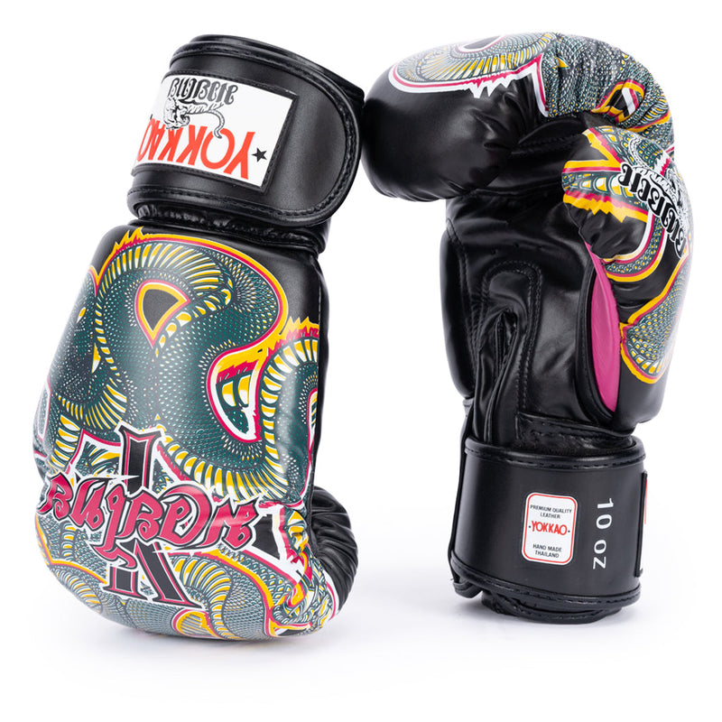 YOKKAO Snake Boxing Gloves are made using premium 100% leather with composite foam padding for peak performance. Get strapped with YOKKAO Snake Boxing Gloves and be blessed with venom. Made with 100% premium real leather.